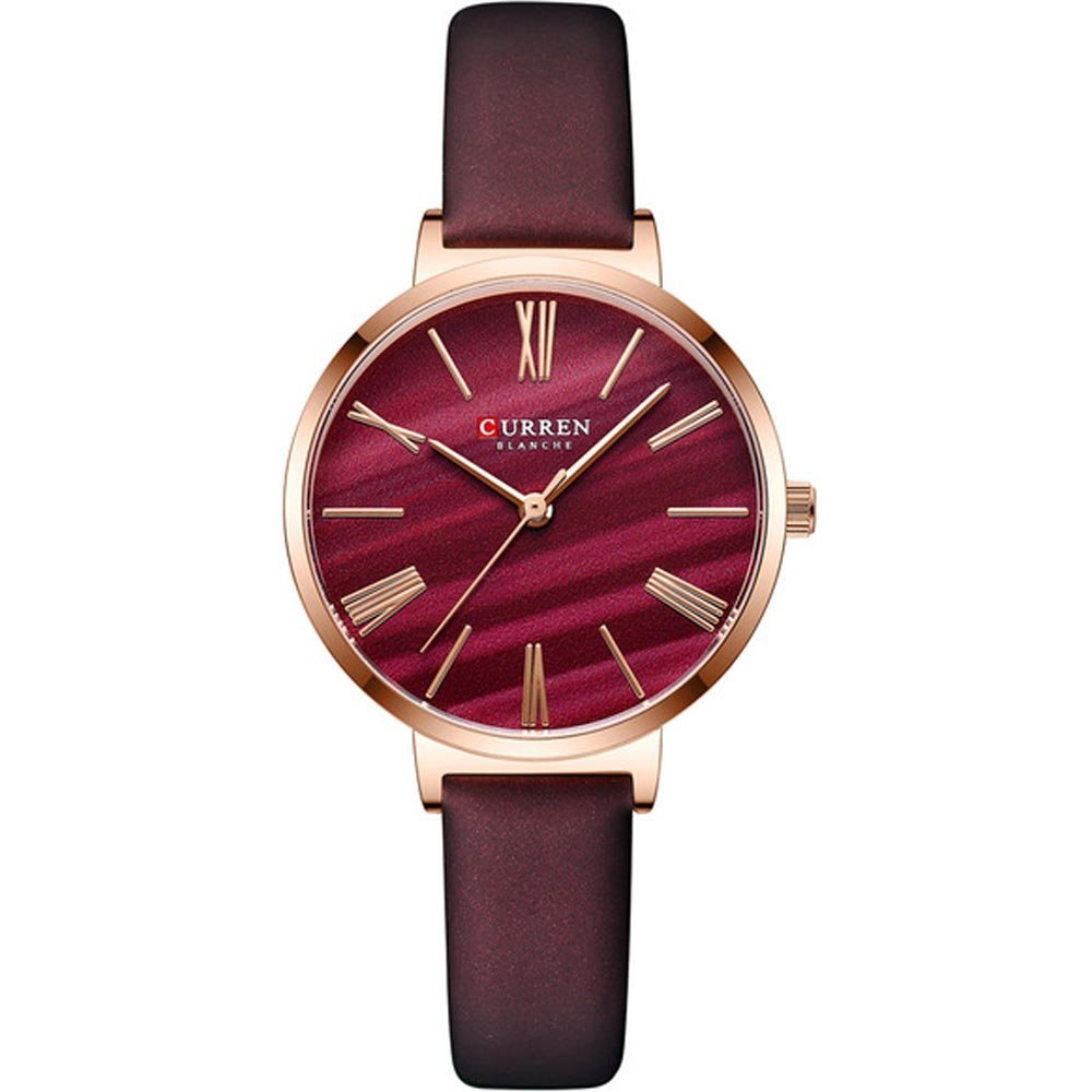 Curren 9076-RS-MRN Leather Band Women Watch